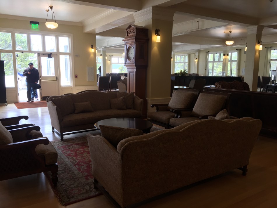 At the Lake Hotel overlooking still frozen Yellowstone Lake, I found myself eating a bison burger for lunch in a dining room that mirrored ‘The Shining’. I expected to find an ax wielding Jack Nicholson lurking around any corner as I explored. My photo doesn’t do it justice.