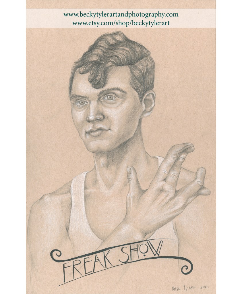 art artist drawing Etsy fan art home decor horror movie art small business Lobster Boy, AHS Freak Show by Becky Tyler Art and PhotographyOctober 18, 2021 Evan Peters as The Lobster Boy. Medium: Graphite Pencil on Tan Paper Size: 11×17 Drawing available on my Etsy Page. Discover more from Becky Tyler Art and Photography Subscribe to get the latest posts sent to your email. Type your email… Subscribe Share this:Share Click to share on X (Opens in new window) X Click to share on Facebook (Opens in new window) Facebook Click to share on Bluesky (Opens in new window) Bluesky Click to email a link to a friend (Opens in new window) Email Click to share on LinkedIn (Opens in new window) LinkedIn Click to share on Tumblr (Opens in new window) Tumblr Click to share on Pinterest (Opens in new window) Pinterest Click to share on Threads (Opens in new window) Threads Like Loading... Post navigation Previous Post Next Post