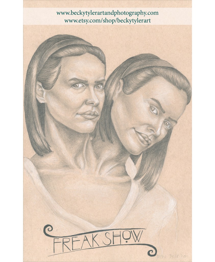 art artist drawing Etsy fan art home decor horror movie art small business The Twins, AHS Freak Show by Becky Tyler Art and PhotographyOctober 28, 2021 Sarah Paulson as The Twins. Medium: Graphite Pencil on Tan Paper Size: 11×17 Drawing available on my Etsy Page. Discover more from Becky Tyler Art and Photography Subscribe to get the latest posts sent to your email. Type your email… Subscribe Share this:Share Click to share on X (Opens in new window) X Click to share on Facebook (Opens in new window) Facebook Click to share on Bluesky (Opens in new window) Bluesky Click to email a link to a friend (Opens in new window) Email Click to share on LinkedIn (Opens in new window) LinkedIn Click to share on Tumblr (Opens in new window) Tumblr Click to share on Pinterest (Opens in new window) Pinterest Click to share on Threads (Opens in new window) Threads Like Loading... Post navigation Previous Post Next Post