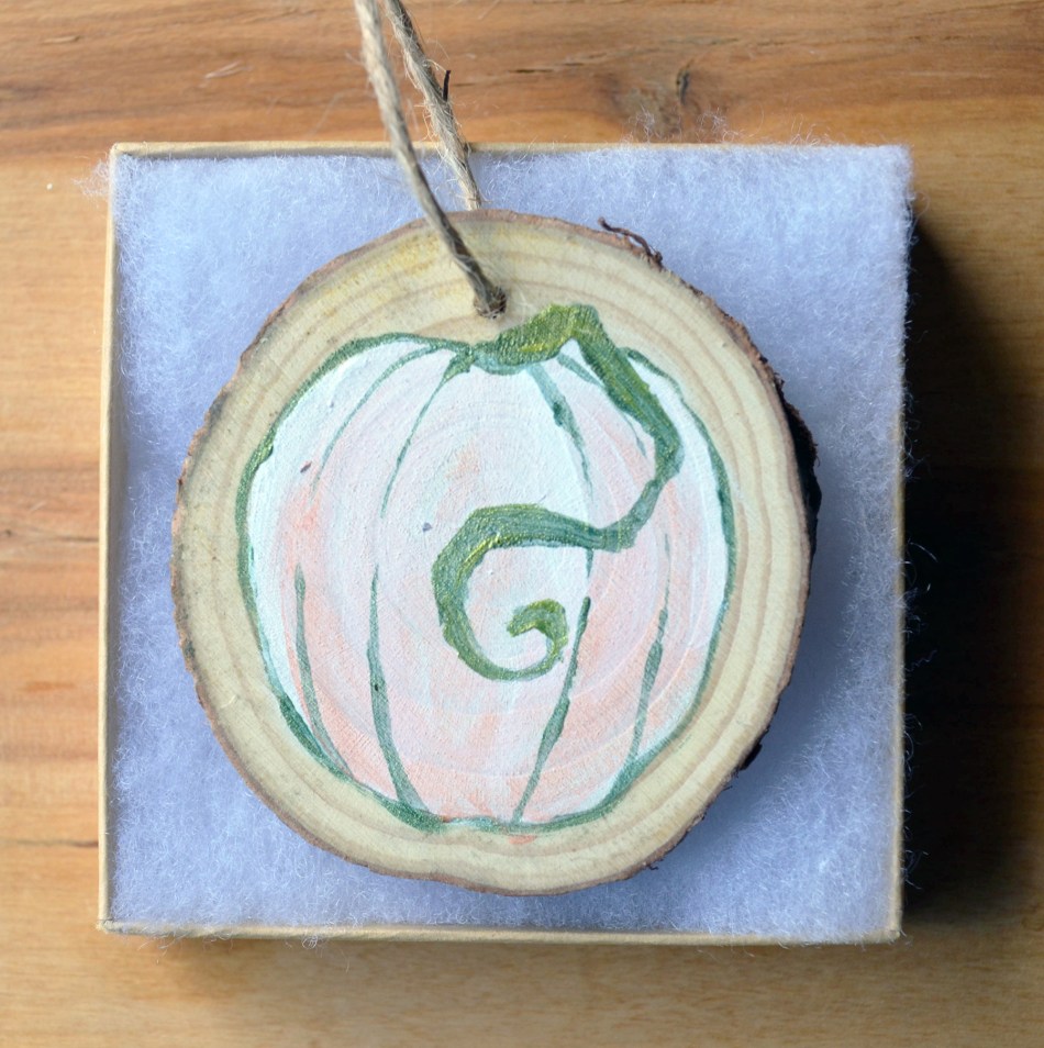 White Pumpkin Wood Slice Ornament
