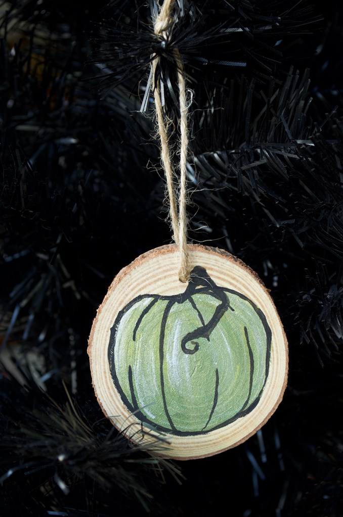 Green Pumpkin Wood Slice Ornament
