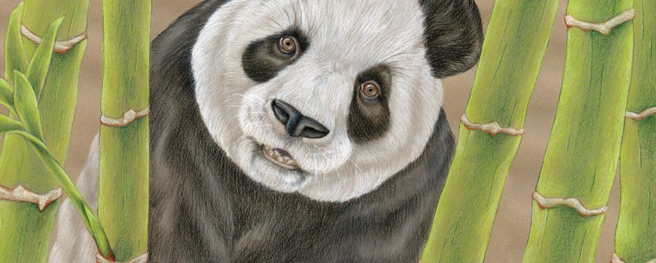 Panda and Bamboo, Colored Pencil & Watercolor