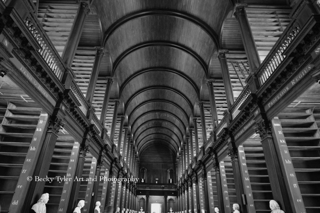 I woke up on Monday feeling jet lagged and maybe a bit hungover, but it didn’t stop me from dragging myself to the city center when I planned on squeezing in as much as possible. I started at Trinity College for the Book of Kells tour. If you’re not familiar, The Book of Kells has been preserved at the college and dates back 1200 years. The writing and illustrations drawn by monks are ornate and easy on the eyes. At the end of the tour, I walked through the library room where Oscar Wilde once studied. The books have been removed for the most part for preservation purposes, the room is beautiful. An inspiring place to study, I’m sure.