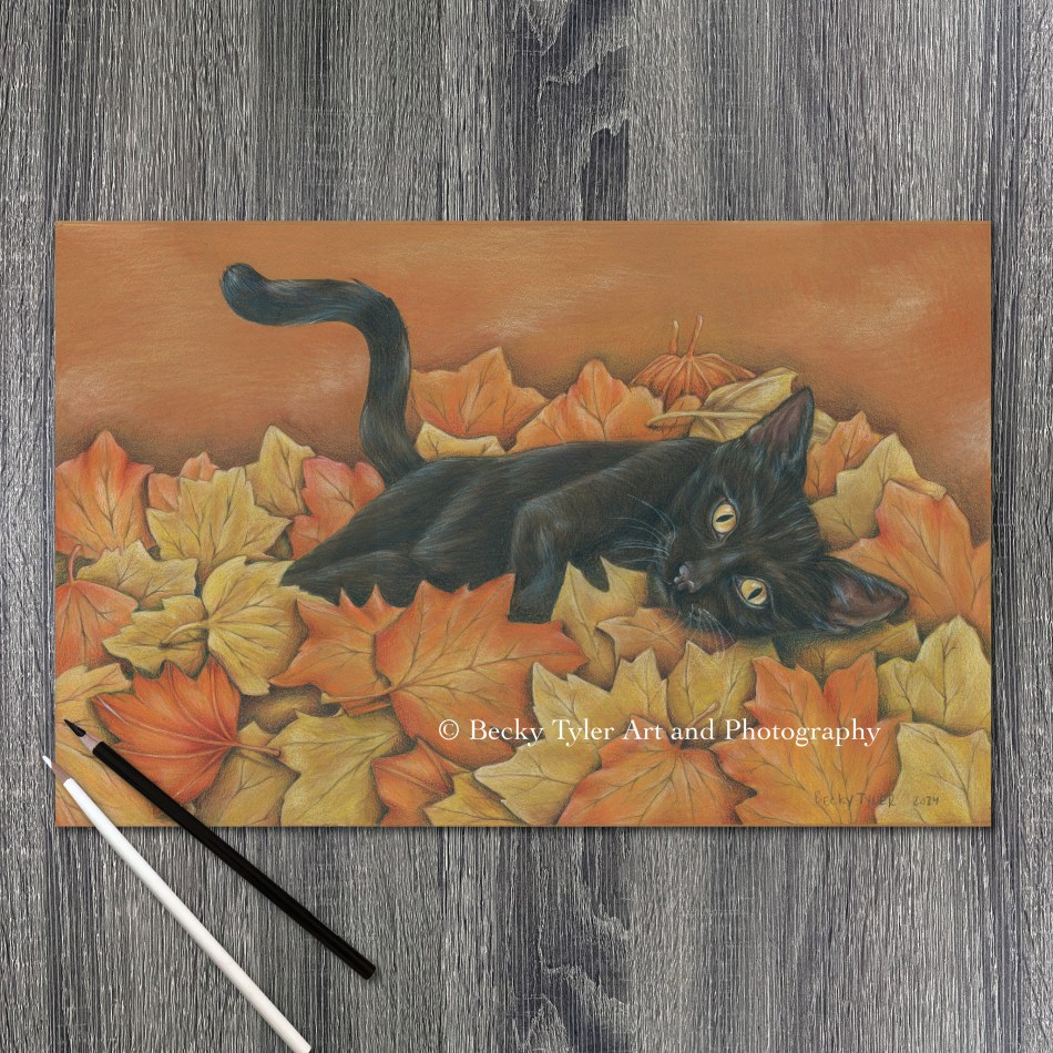 Meow! This black cat in autumn leaves drawing is still available. You can also order prints of it if you are looking for something at a cheaper price. It is available here.