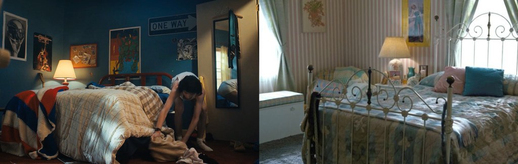 Mike’s room is dark blue and covered in posters. A ONE WAY sign hanging on the wall shows his unflinching path forward even when it means being at odds with his friends. He defends Eleven even if Lucas stops talking to him in season one and puts Eleven first when Will wants him to play Dungeons and Dragons in season three. In season four, he goes out of his way not to notice the hurt he causes Will. He is the first friend to lash out stubbornly but the last friend to give up. This room tells that tale perfectly. The Wheeler siblings couldn’t be more different aesthetically, but they both have the same stubborn sense of right and wrong.