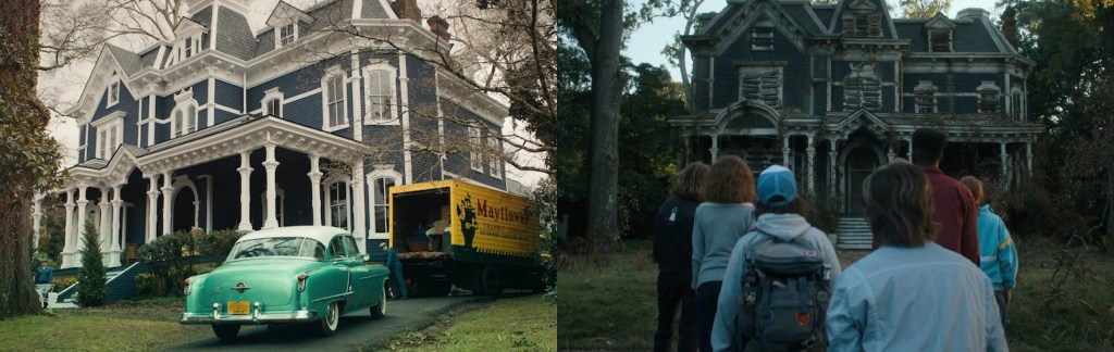 In the 1980s, Nancy, Steve, Dustin, and company discover a gateway to the Upside Down in the house. Now, the house dusty and careworn, forgotten by time. The exterior boarded up, the paint having lost its luster. Truly something out of a horror movie. Once in the Upside Down, the veins of the place take over the house giving it an otherworldly appearance. Alive almost. With evil.