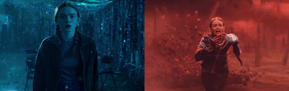 The Upside Down started out as dark blue and black, but the use of reds and oranges were used more in later seasons as Vecna’s influence and power grew. In season four, these reds were used whenever Vecna was trying to kill someone in the Upside Down. Max, who could hear music as her way out of the Upside Down, could see a circle of light in the red darkness for her to escape from. This visual is used multiple times in later seasons as a way of showing portals between the Upside Down and Right Side Up.