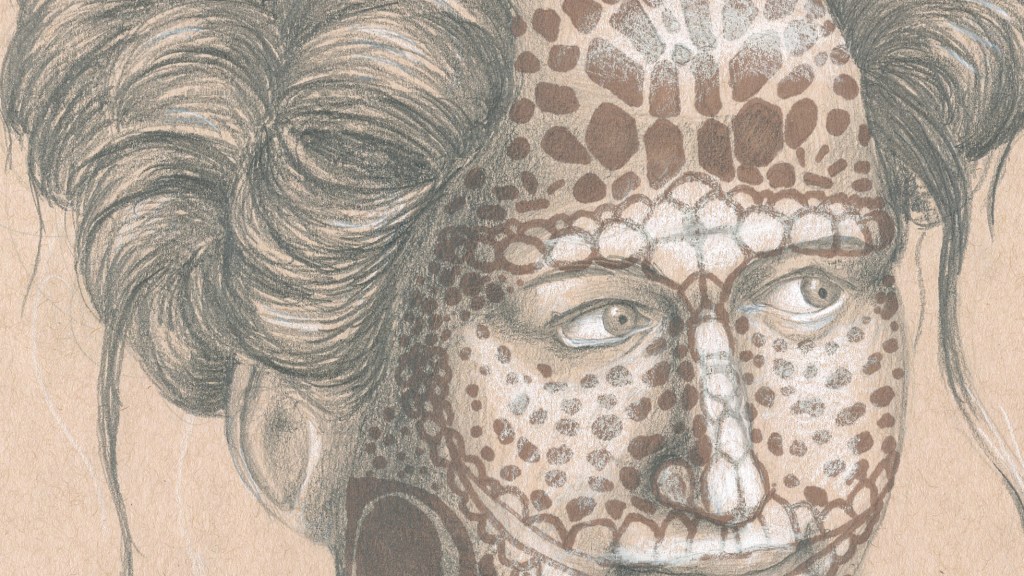 Evan Peters as The Lobster Boy. Medium: Graphite Pencil on Tan Paper Size: 11×17 Drawing available on my Etsy Page.