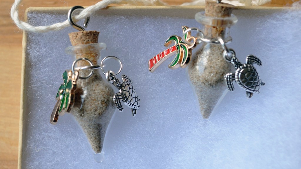 These fun little holiday ornaments are one inch tall glass bottles filled with beach sand. Cute charms are attached toContinue Reading