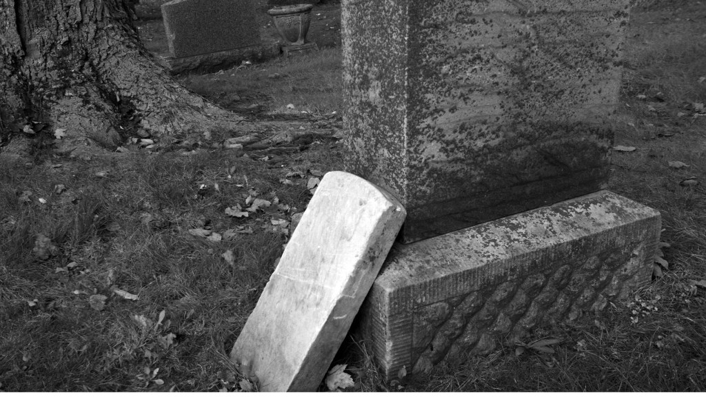 Tombstone and Autumn Leaves